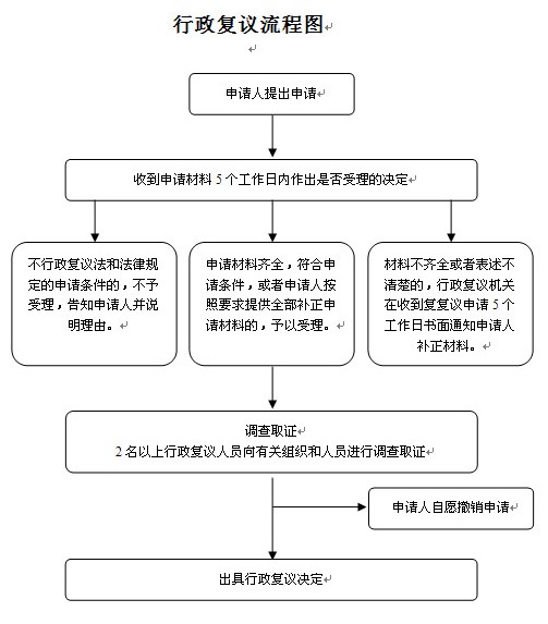 | 职权类型 | 其他类 | 法定期限 | 收到复议申请,5日内审查;10日内答复;30日内或60日内依法处理 |